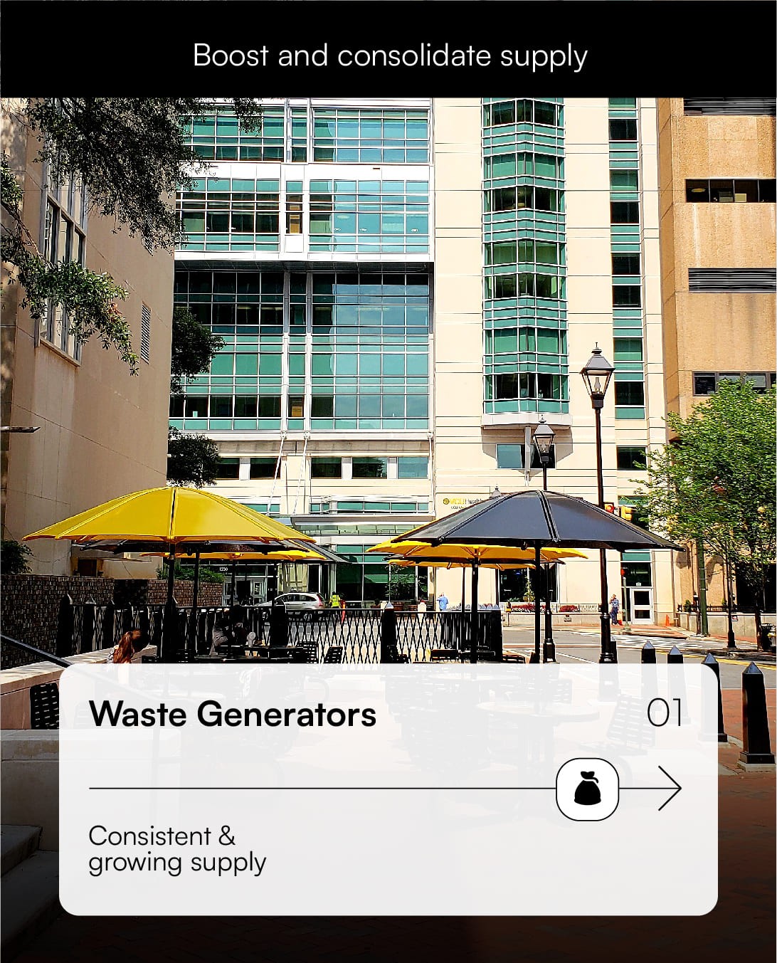 Got larger waste amounts? Connect your organization (mall, school, hotel) to Trófica’s network of recycling organizations, free of charge, and lower your waste management bill up to 40%*.